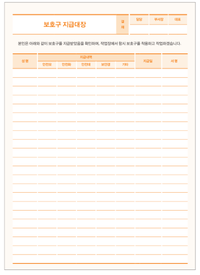 >>안전관리비 관리 등 원활한 공사 관리를 위해서 보호구 지급대장을 만들어서 지급 현황 등을 기록해두어야 함.