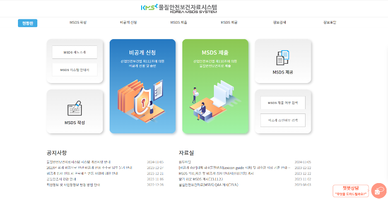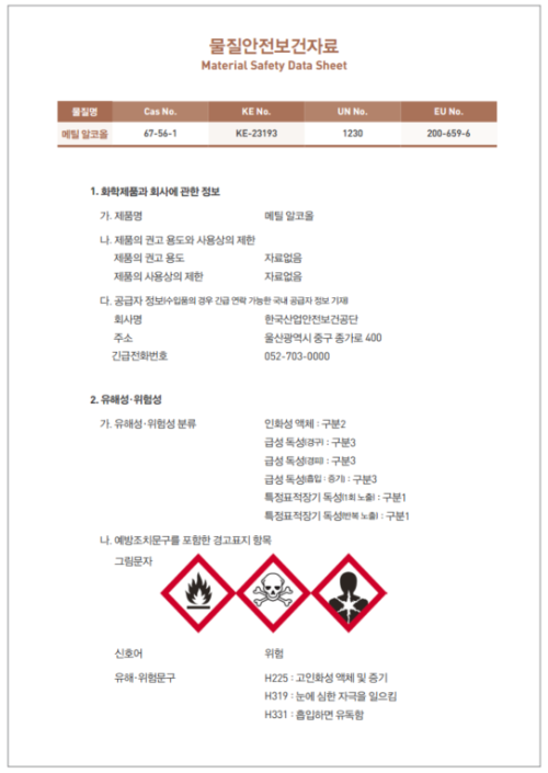- MSDS 시스템(https://msds.kosha.or.kr/)을 활용