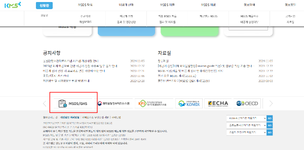 >>참고자료 검색은 홈페이지 아래 MSDS/GHS를 클릭하면 검색 가능함.
