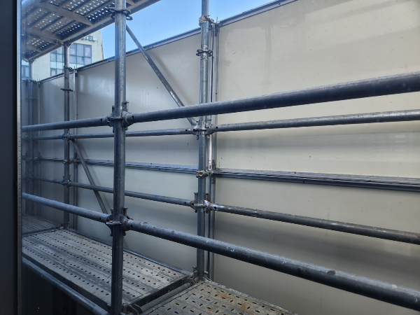 일반적으로 가설비계는 작업자의 고소작업을 목적으로 설치하지만 해체공사는 가설비계에 방진망 등의 설치를 통해 해체공사로 인한 잔해물 낙하사고 방지 및 비산먼지, 소음을 저감 시킬 목적으로 설치하게 됩니다.