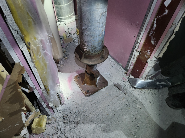 | 고정상태 | -잭서포트 상,하부 밀착 시공 여부 -설치환경(경사구간 등)을 고려한 베이스 플레이트 및 헤드 플레이트 고정 상태 >각도 조절판,뚫림,전단 방지 패드 설치 등 -구조검토서 결과에 따른 보강 조치 여부 (좌굴방지를 위한 수평 보강재 설치 등) -마감재 해체 후 구조체에 직접설치 여부 |