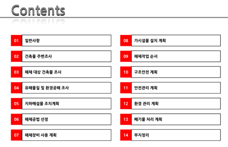 | 15. 해체공사시 주요검토사항(건축물 상부에 올려서 해체/건축물 해체/해체감리/해체장비 탑재/해체장비 인양) (2) | 2024.12.11 |
