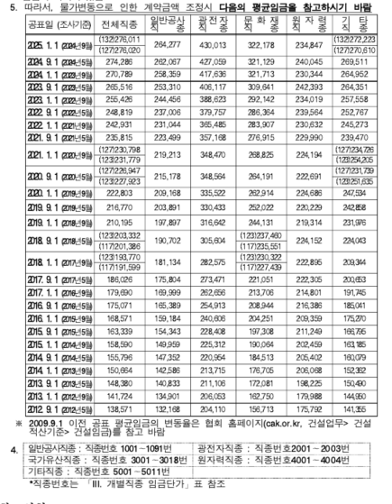 >>실제로 이러한 노임가격이나 임금표는 각종 공사나 용역 입찰이나 계약 시 기준 자료가 되고, 실제로 이를 활용하여 내역서가 작성되기 때문에 업체나 수요 기관 등은 매년 관련 내용을 확인하고 이를 업무에 적용하여야 함.