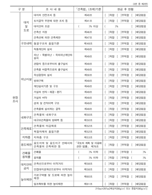 이 내용은 공사 감리뿐만 아니라 업무대행자 역시 검사조사표를 작성해야 하기 때문에 참고하시면 됩니다.