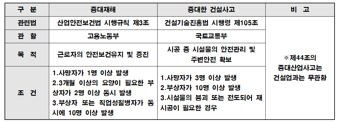 특히 부상자가 발생한 경우는 산업안전보건법에 따라 즉시 보고해야 합니다. 그중 중대재해로 분류된 경우에는