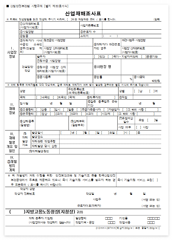 위 글과 관련하여 산업재해 조사표 양식 올려드립니다.