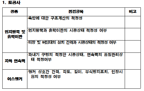 특히나 해빙기, 우기(여름철), 동절기 점검이 대표적입니다.