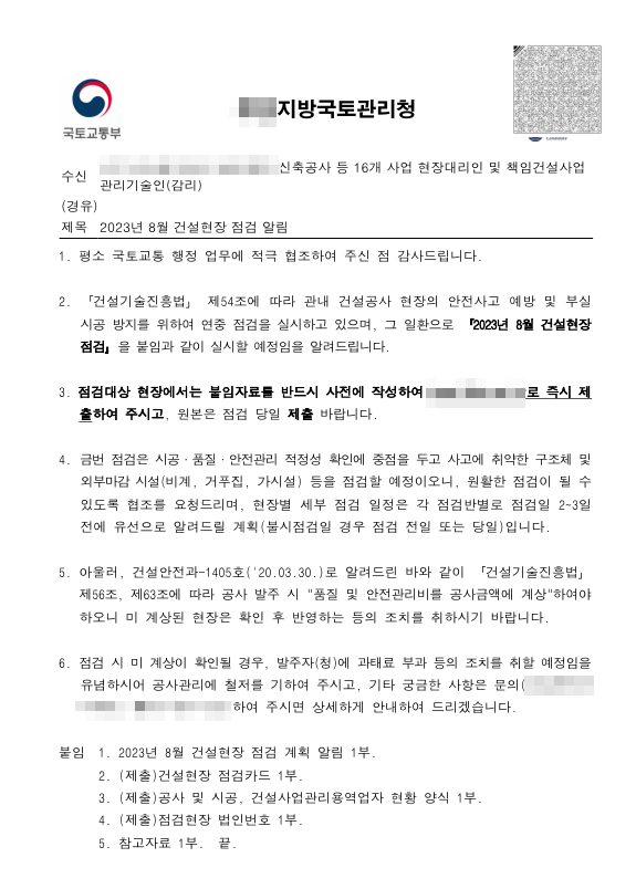 건설 현장에서 근무하다 보면 현장 점검이란 것을 참 많이 받게 됩니다.